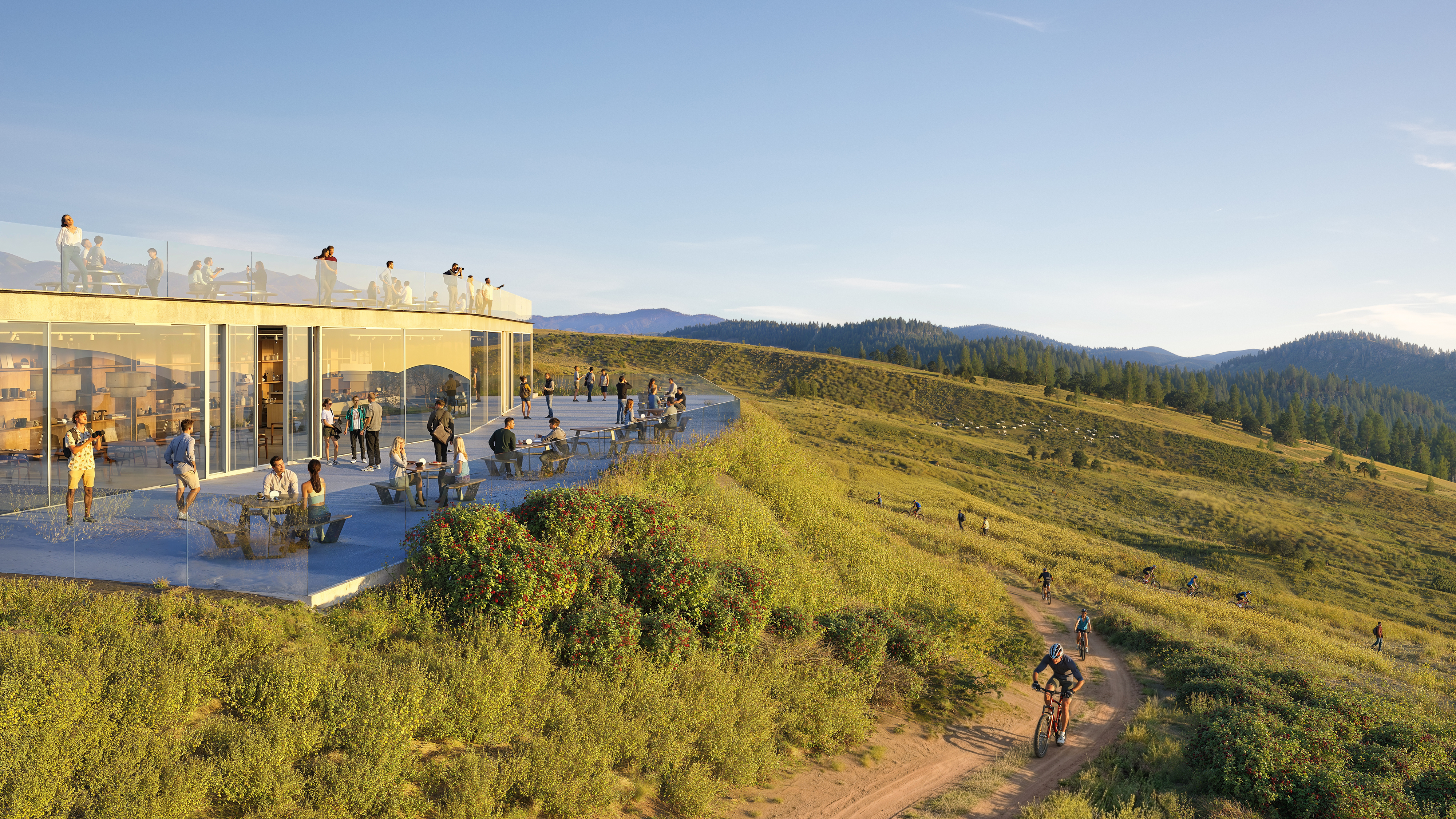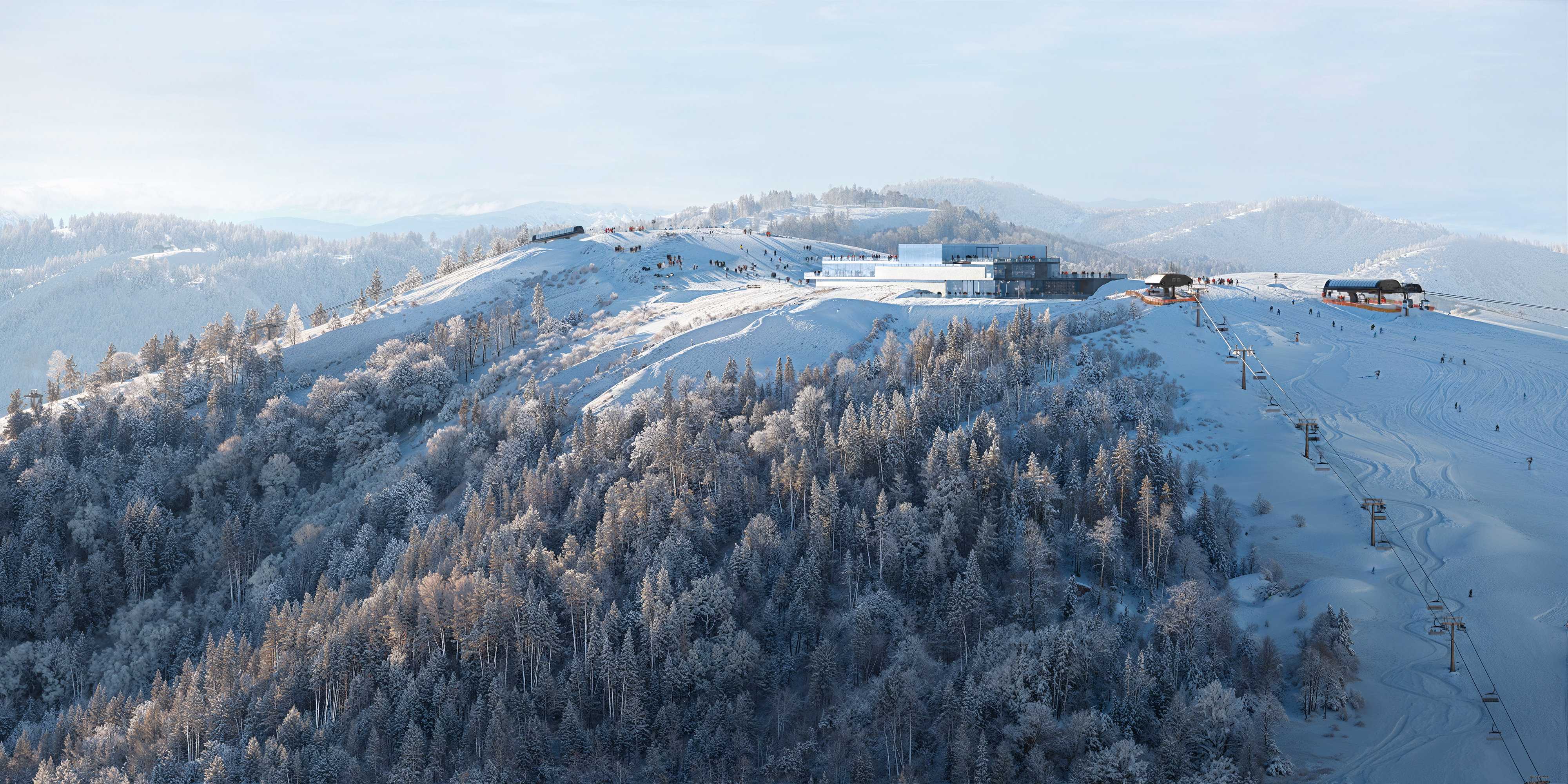 Mountain Centre стане одним із ключових публічних просторів курорту та інфраструктурним вузлом на вершині гори. Подібні центри є важливою частиною провідних європейських гірських курортів – це місце, де відвідувачі можуть пересідати з одних підйомників на інші, відпочити, поїсти, провести час із дітьми або відвідати події.